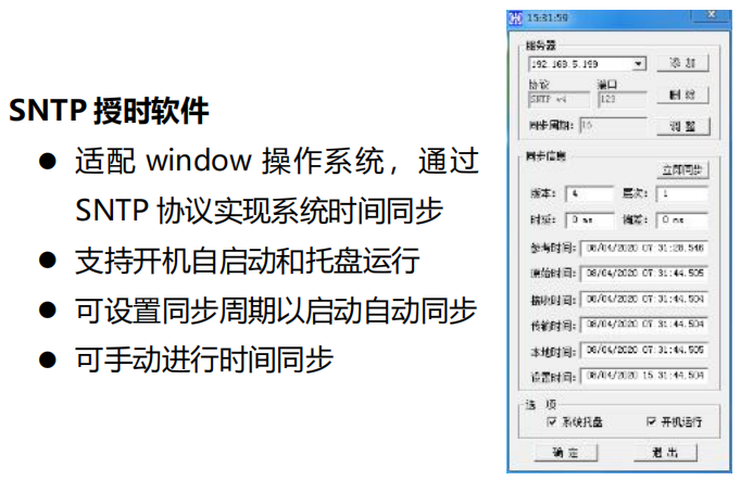 ●用于對HJ2000B設備中NTP服務的詳細監控; ●可監視HJ2000B服務器自身的狀態信息,包括同步狀態、時間偏差、層次信息等; ●可監視北斗/GPS參考源信息,包括鎖定狀態、定位信息等; ●可監視NTP客戶端訪問情況和時間偏差; ●支持時間偏差門限告警、失鎖告警和狀態切換告警; ●支持SNMP、syslog、Email等告警方式; ●支持服務器集群服務質量監測和優選制動操作。 |